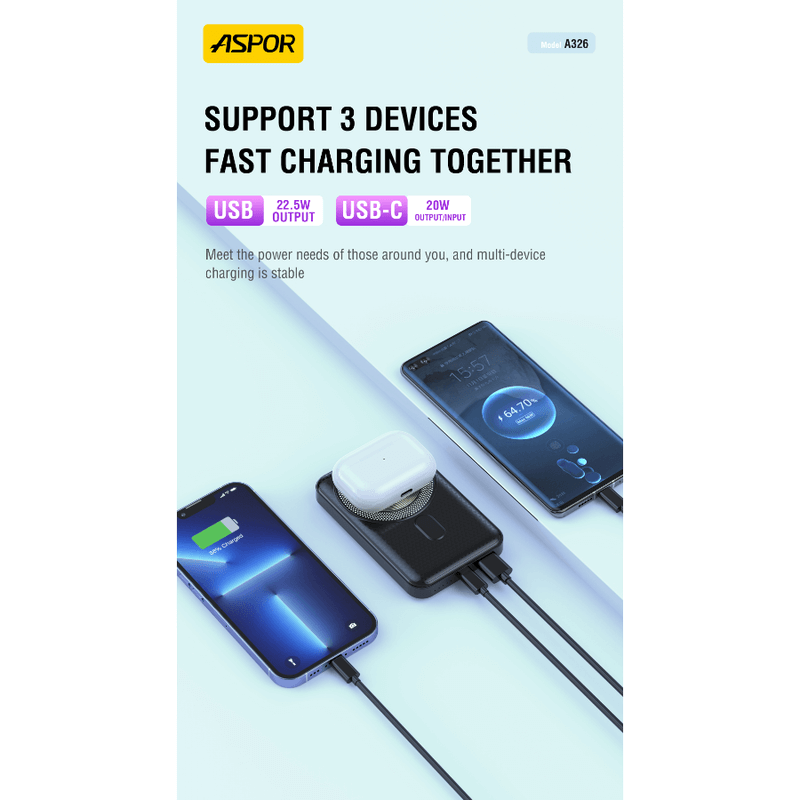 Aspor 10000mah a326 digital display magnetic wireless power bank