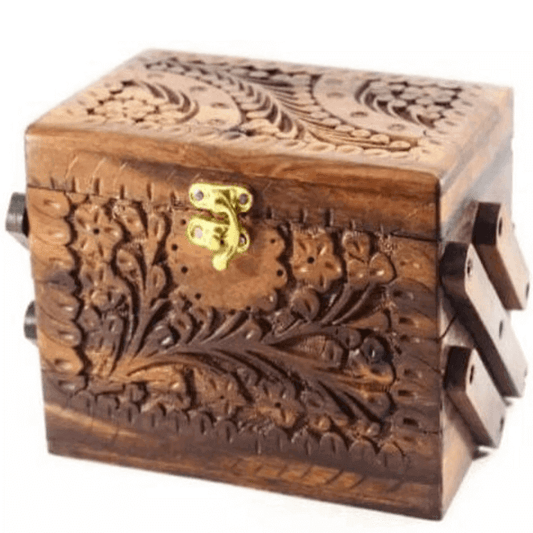 Hand made wood 3 step trolley jewelry box