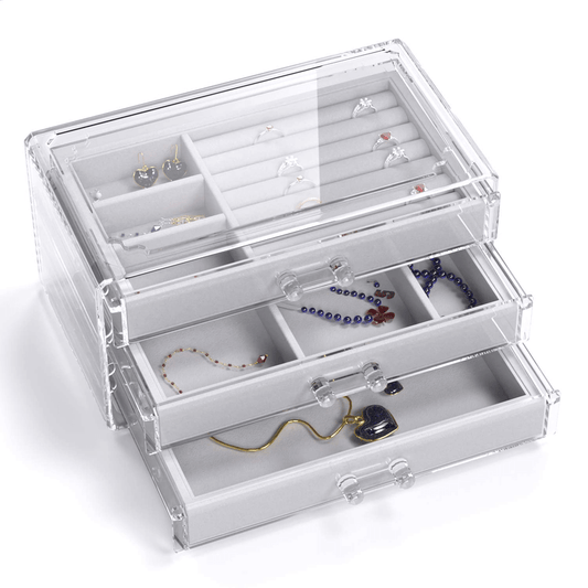 Acrylic jewelry box with 3 velvet drawers