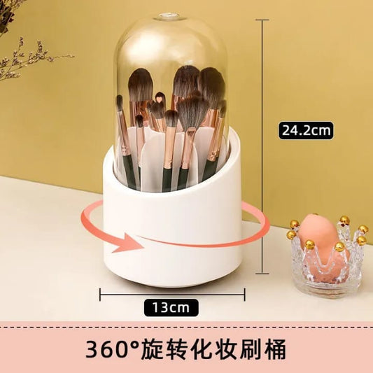 Rotating makeup brush holder with lid