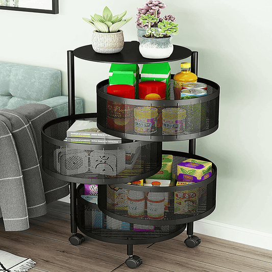 4 layer rotating round kitchen storage trolley