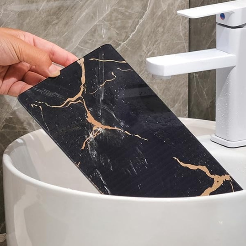 - ceramic trays with a luxurious marble pattern, this dresser top stand is both functional and easy to clean.