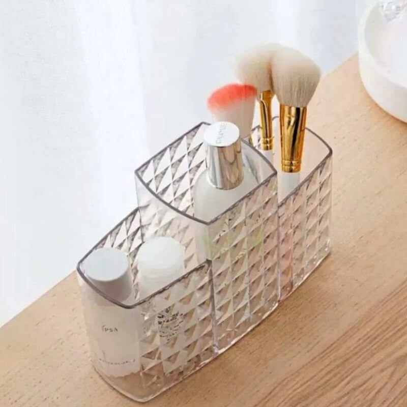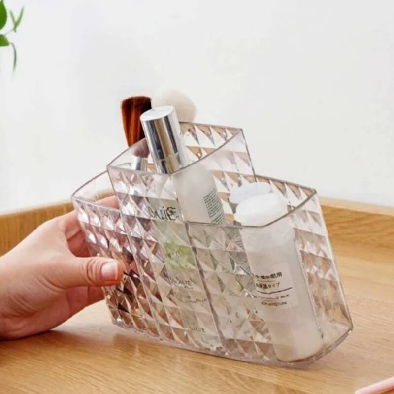 Acrylic diamond cut makeup organizer
