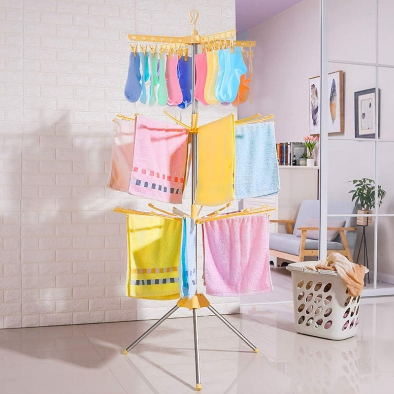 360° rotating clothes drying rack laundry stand stainless steel 3 tier foldable