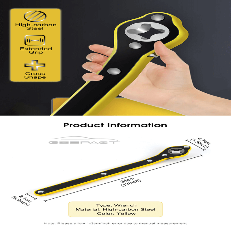 Use labor saving wrench with ergonomic design and reinforced ratchet head.