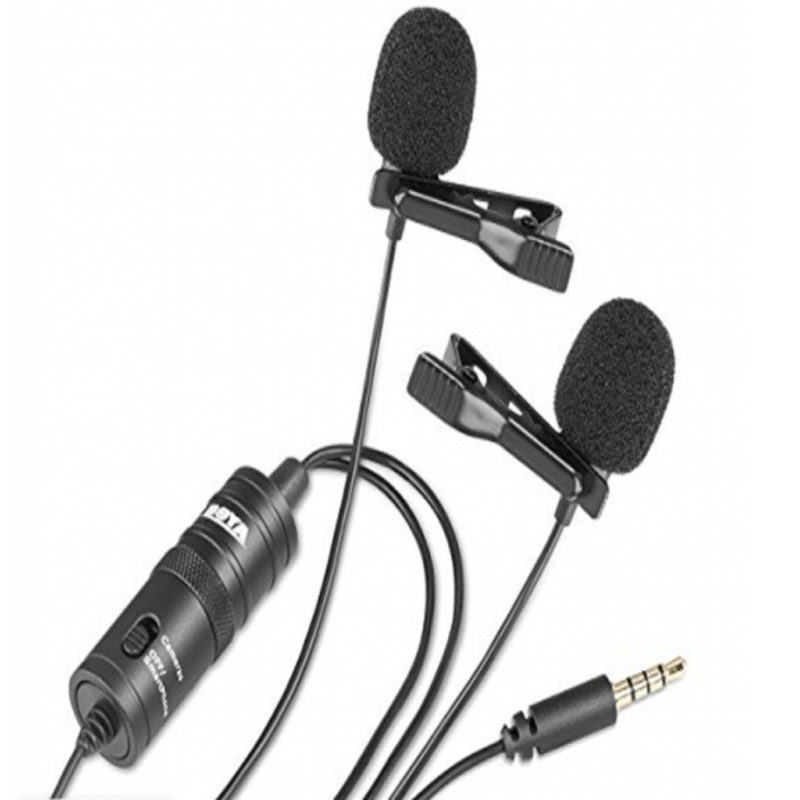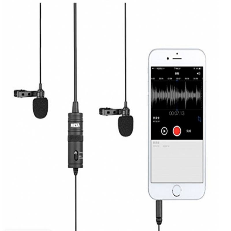 - dual omnidirectional lavalier microphones can record two sound resource at the same time
