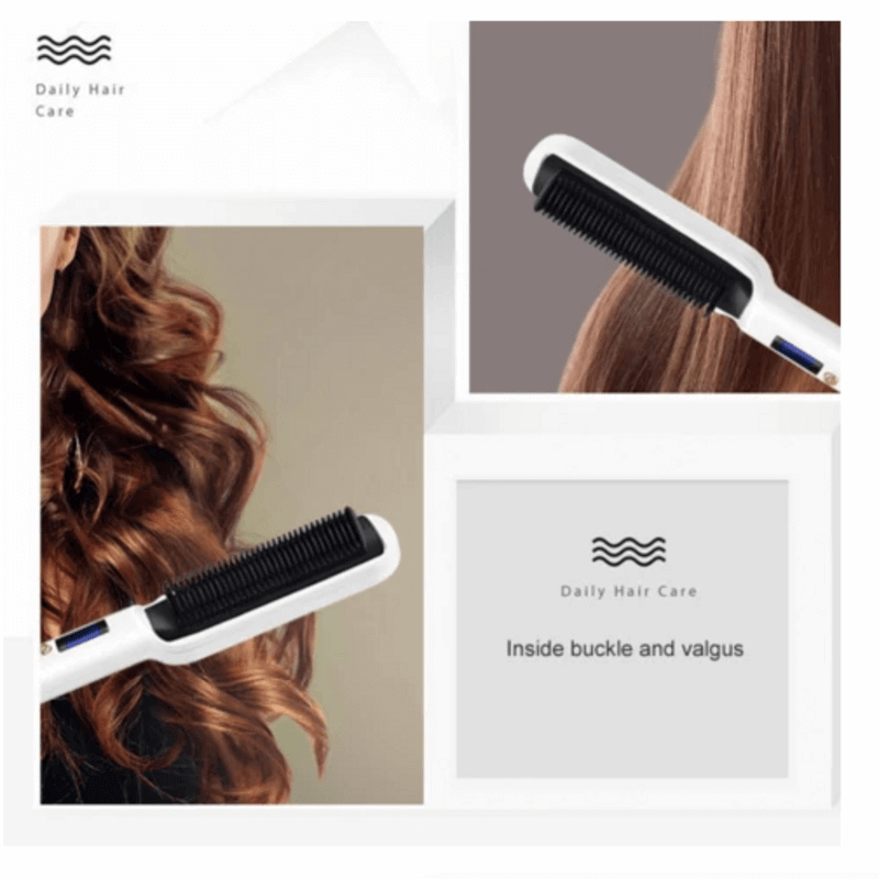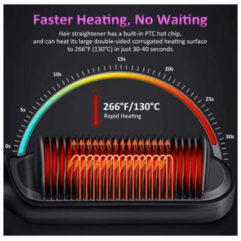 - hair straightener brush features nano tech comb.