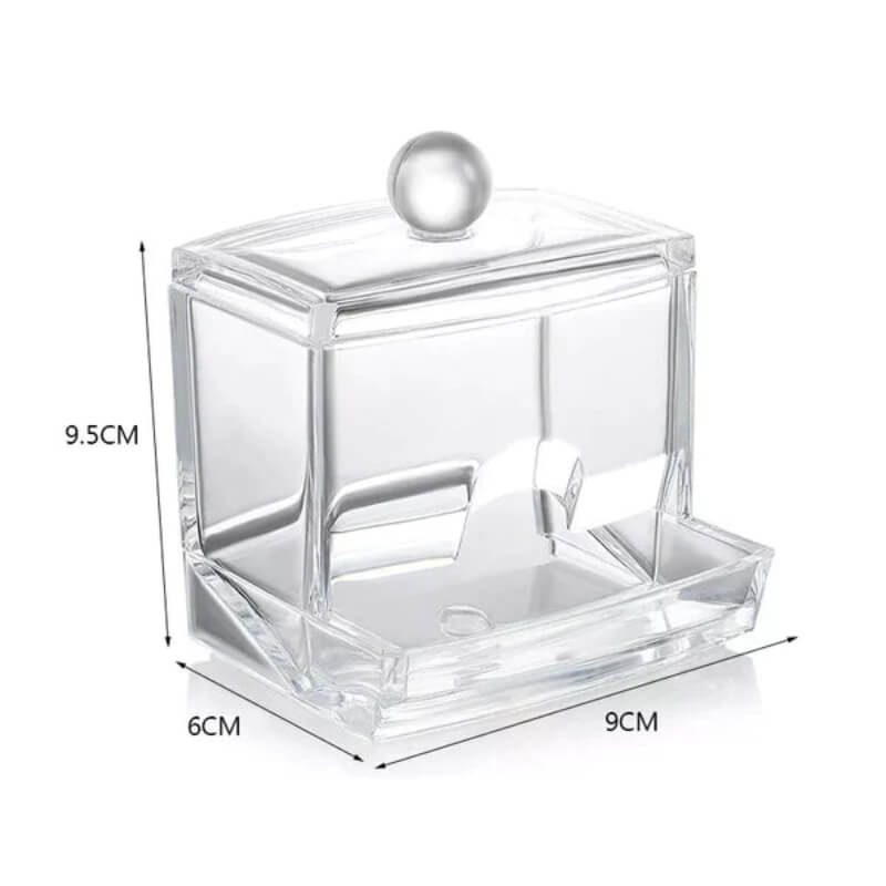 - cotton bud storage box dimensions: 3¼" x 2¾" x 3½"(8.6cm x 7cm x 9cm)