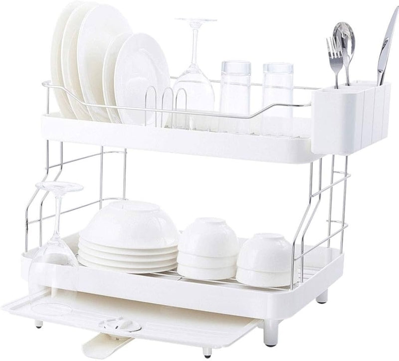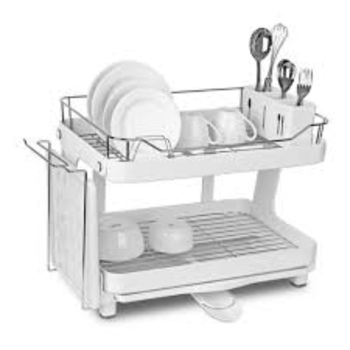 - stainless steel and sturdy hard-wearing plastic dish draining rack, double tier rack