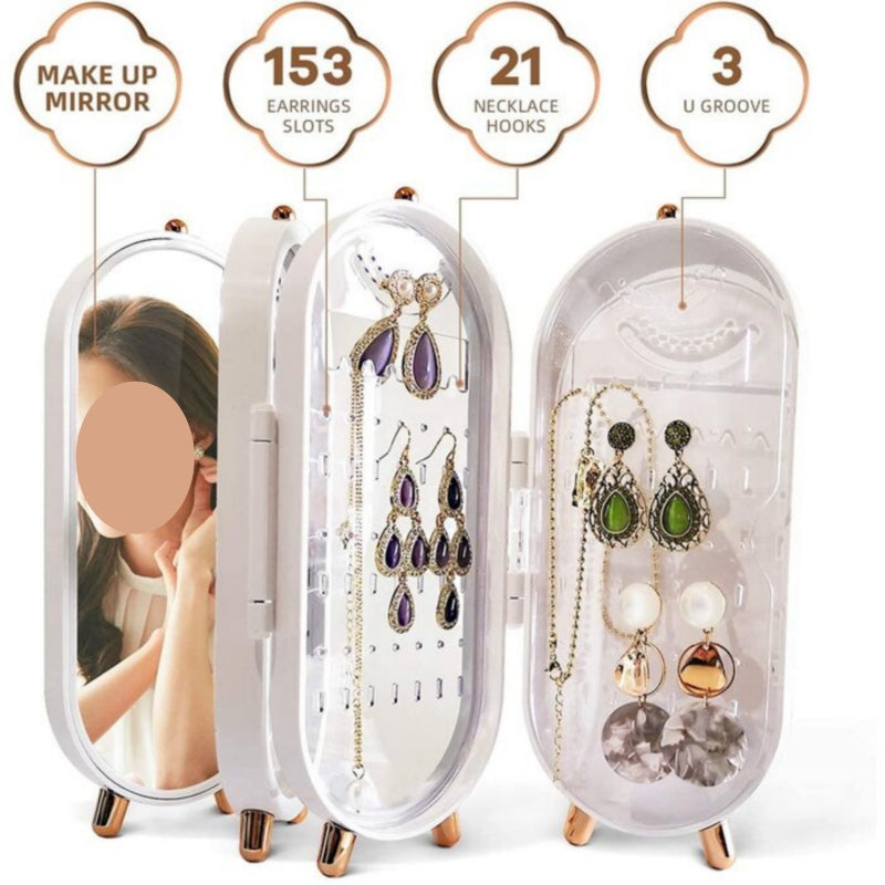 - 153 round holes, 21 necklace grooves, and 3 u-shaped grooves on the four-layer earring holder are enough for accommodating different kinds of jewellery in one place.