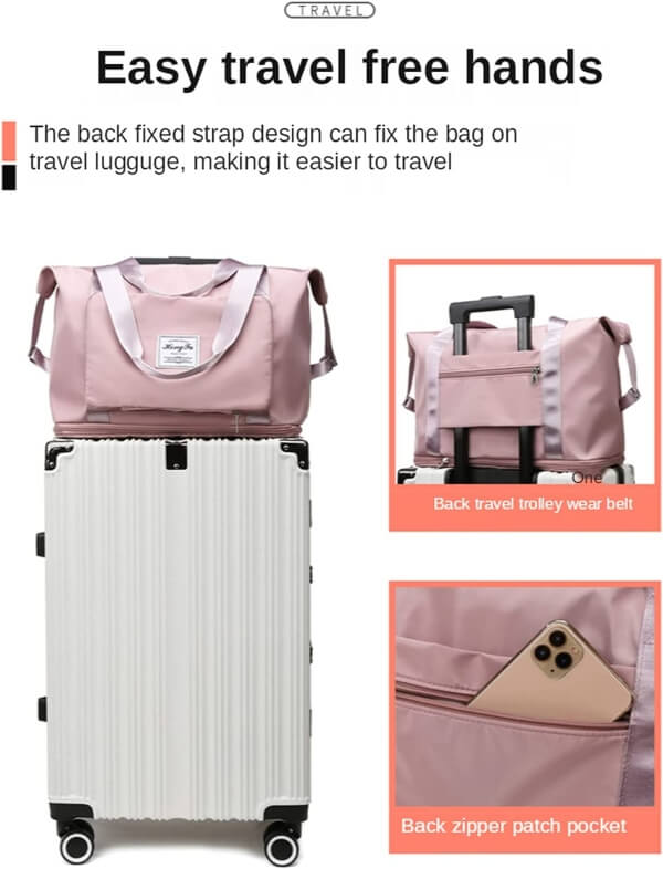 - use it as hand bag, shoulder bag, or place it on your trolly bag.