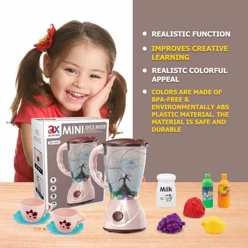 - Mini Juice Mixer is a fun and engaging toy for toddlers and young children to explore in pretend play.