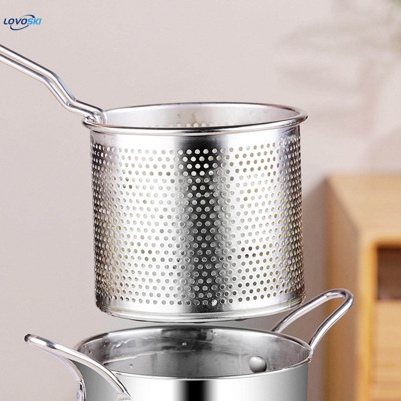 - 1 set stainless steel fry pot with lid and strainer basket stove top deep fryer japanese tempura fryer basket frying pot for french fries chicken wings shrimp