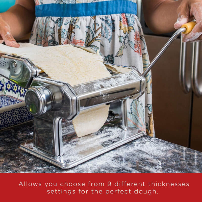 - ? cut into lasagna strips, tagliarine orfetuccine with the help of the cylinder removable double cutter.