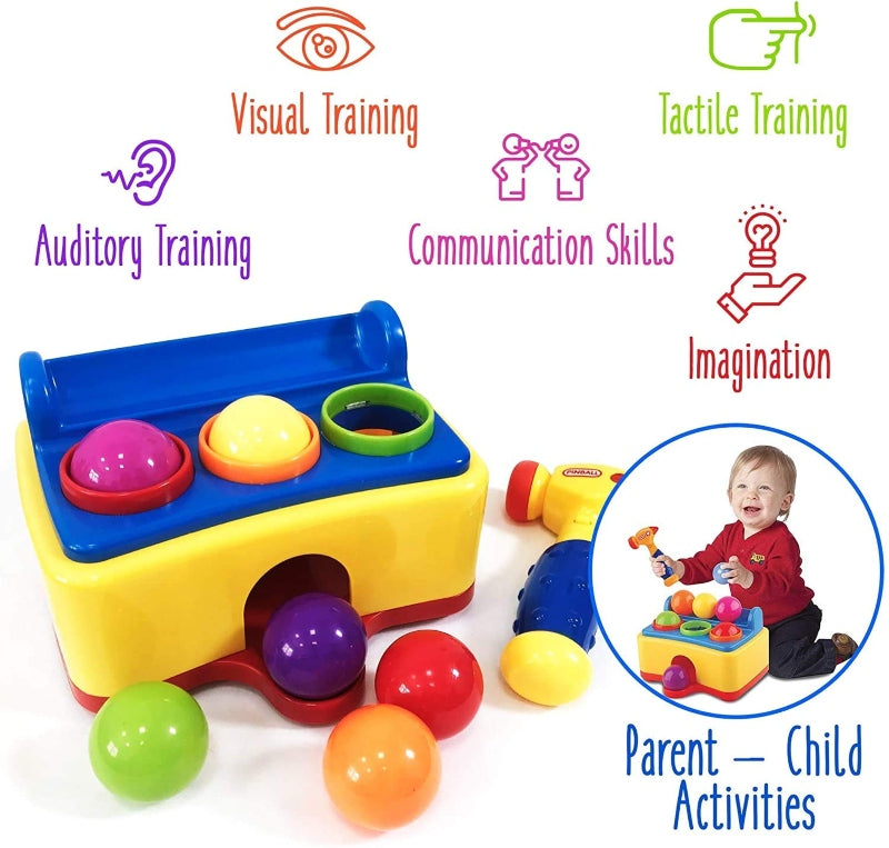- hammer strikes with funny sounds that make the baby chuckle and laugh while it strikes the balls.
