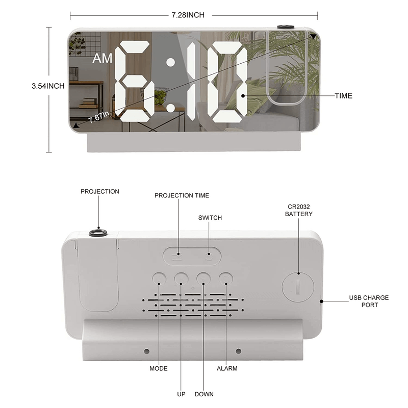 Led digital projection alarm clock