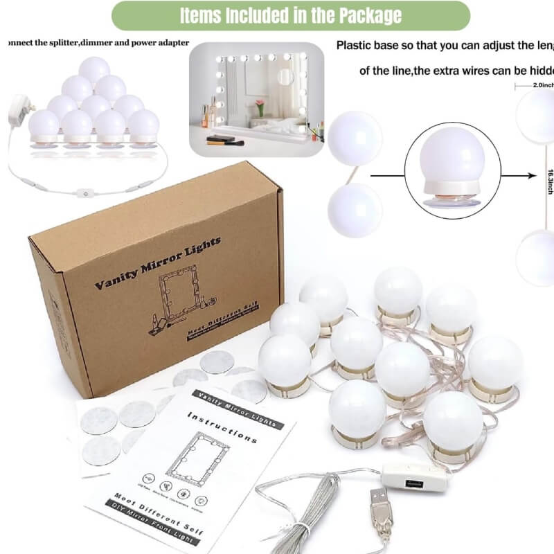 - 10 led vanity mirror light bulbs are very soft, natural, bright, and do not emit extra heat.