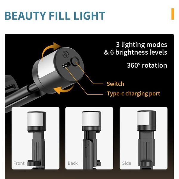 - fill light: 3 lightening modes with different brighteness level & 360 rotation. no need of ring light