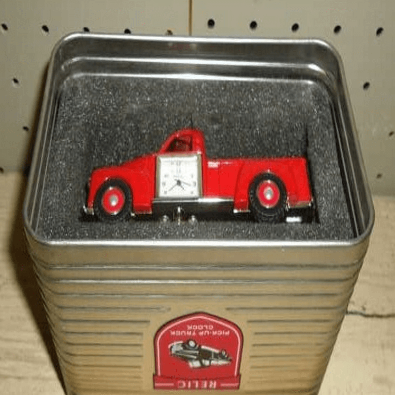 - rubber wheels that roll and a high quality quartz clock tucked at truck’s sidee door.