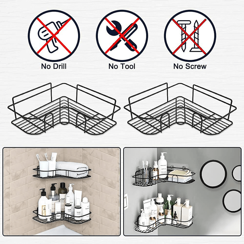 - self-adhesive corner shelf is made using quality gi metal material, durable, reliable and safe.
