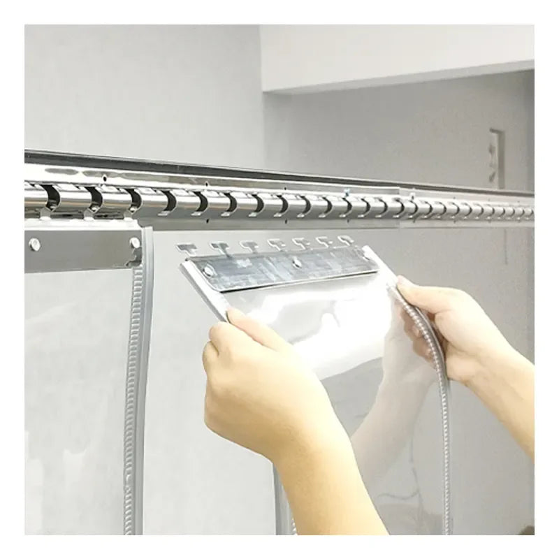Type: Thermal Insulation Door Shield | Material: Crystal Clear PVC | Features: Magnetic Auto-Close, Soundproof, Dustproof | Savings: Reduces AC Electricity Consumption
