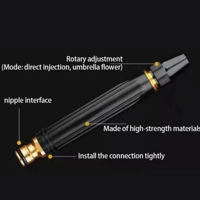 Clean faster and more effectively with our direct injection car wash nozzle. Featuring 50% more pressure and a multifunctional design, this spray nozzle is engineered for deep cleaning power and maximum efficiency. Type: Spray Direct Injection | Compatibility: Universal Hose | Technology: Pressure Boost | Function: Multifunctional